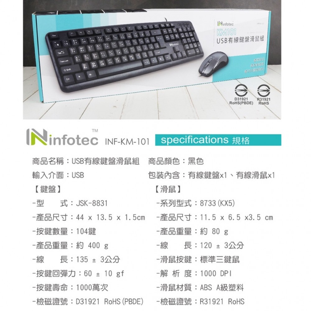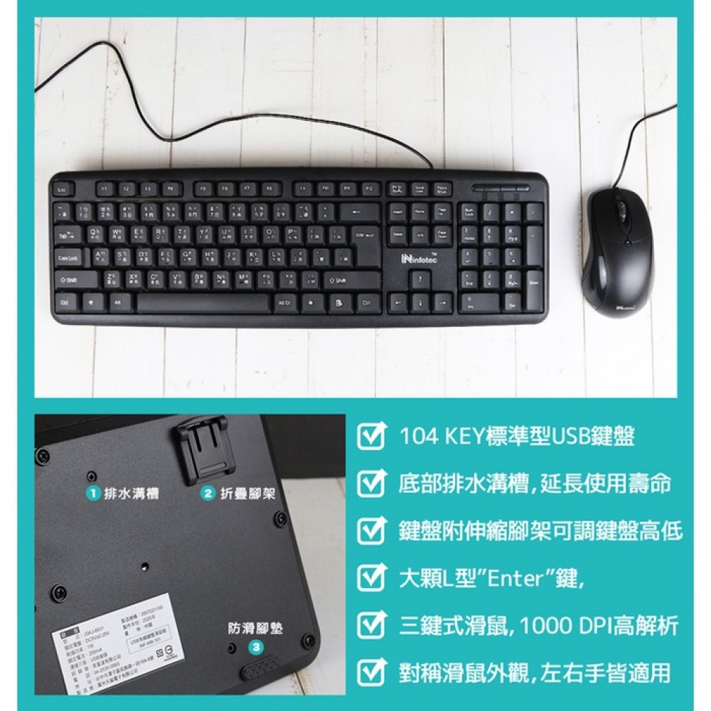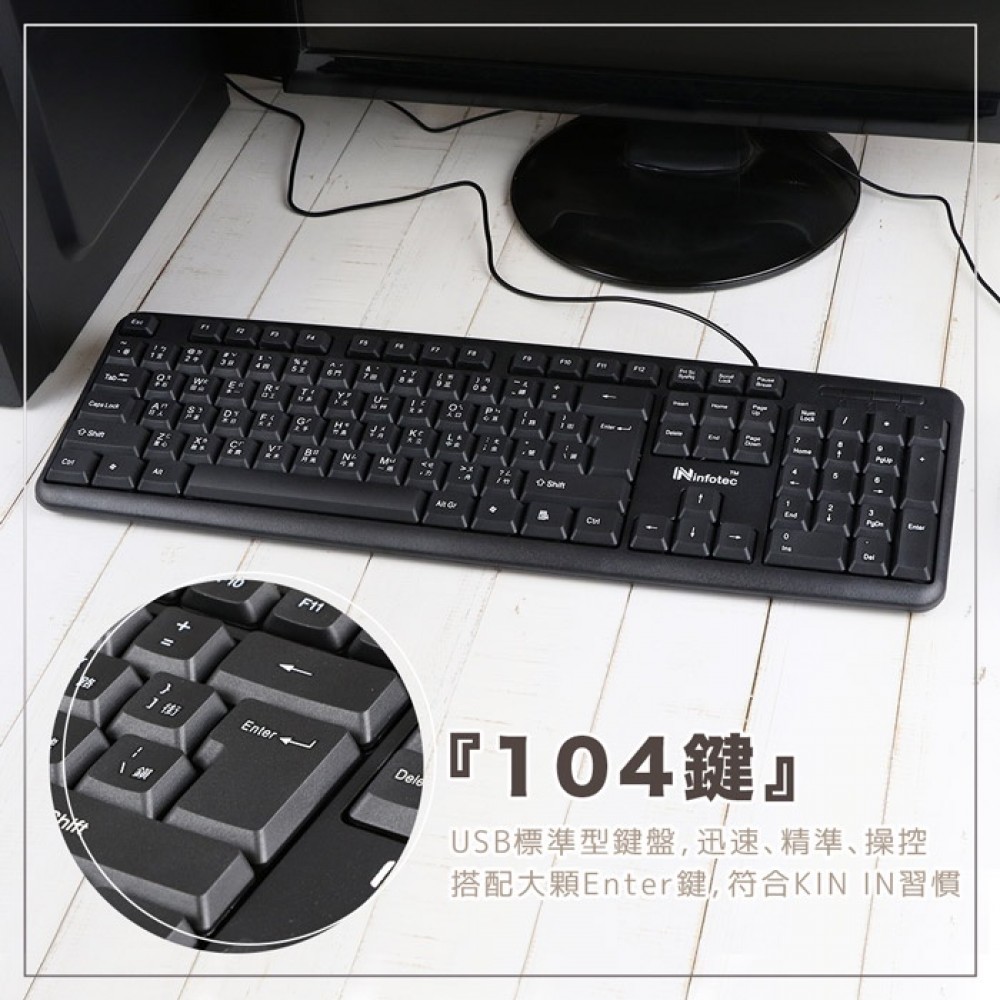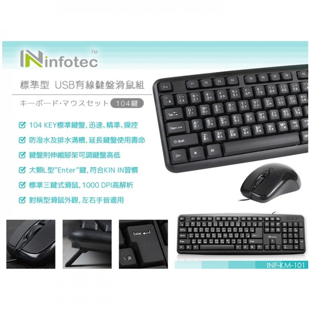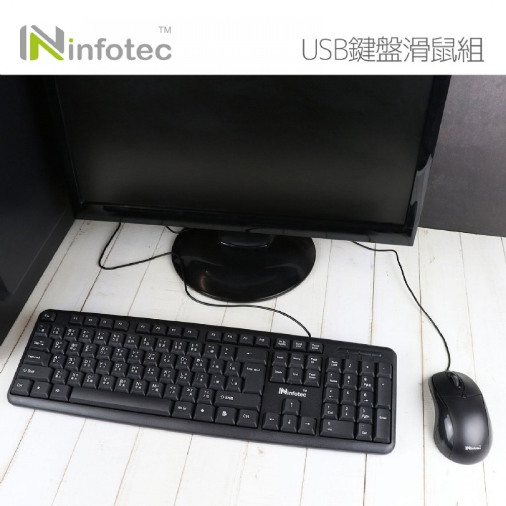 商品名稱:infotec KM101 USB有線標準型鍵盤滑鼠組