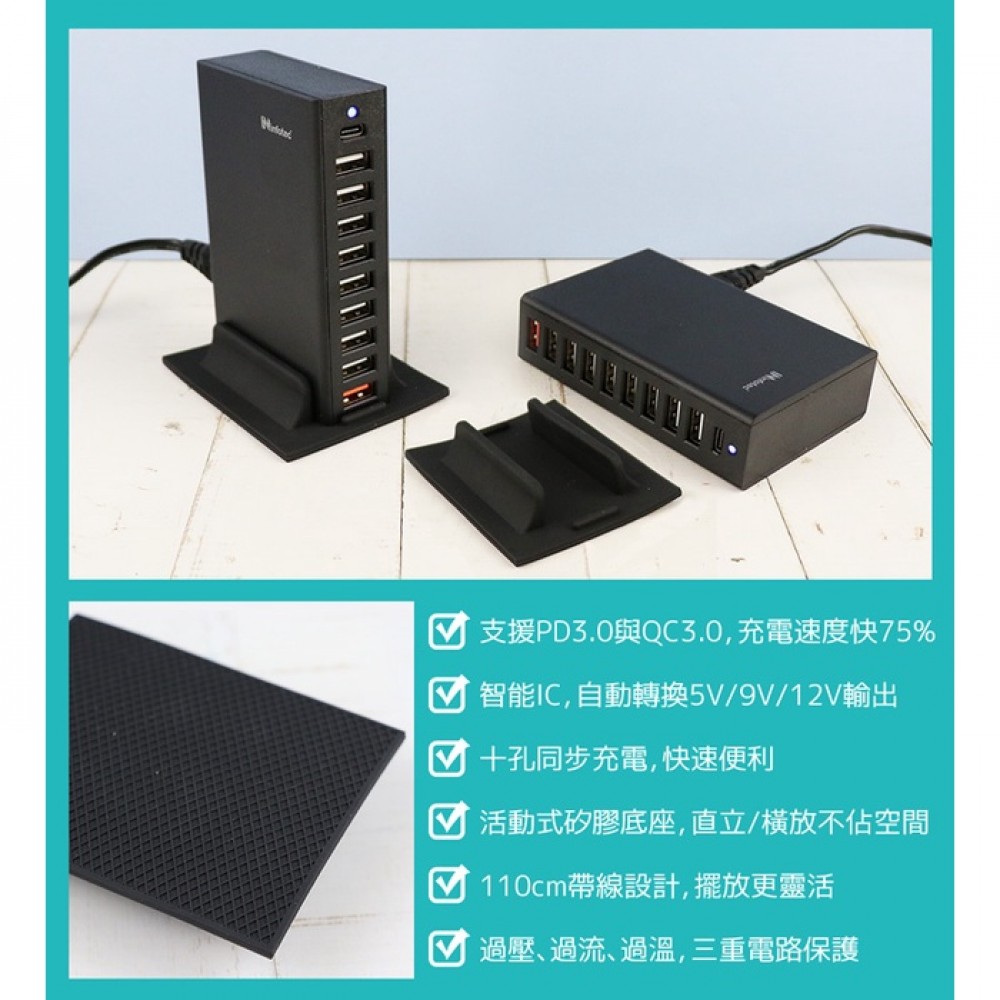 ? infotec CC-202 桌面型 PD+QC 10埠63W快速充電器 ??  優 點 ?